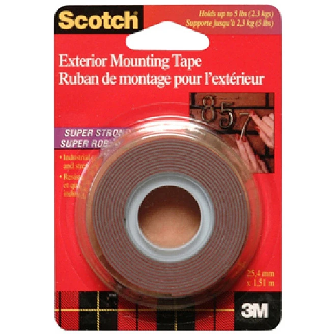 Ruban de montage à double face gris. 1 po x 60 po. Ruban puissant pour fixer les objets aux murs, tuiles et surfaces de verre. Résiste aux conditions extérieures. Supporte jusqu’à 5 lb. Haute adhérence, facile à utiliser. Procure un collage soigné et dissimulé. Se fixe solidement mais se retire facilement et proprement sans dommage sur la plupart des murs et autres surfacesSuper solideRésistant aux intempériesCapacité de charge allant jusqu’à 5 livres