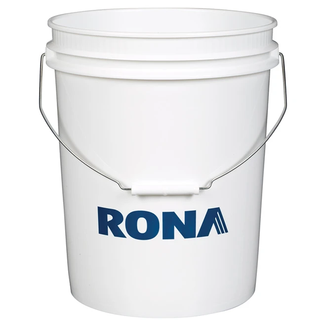 Ce seau tout usage de marque Rona est fait de polyéthylène à haute densité (PEHD) pour assurer une durabilité accrue. Il comprend une poignée pour faciliter son transport et il peut contenir jusqu’à 18,9 litres de matières liquides ou solides. Ce produit est couvert par une garantie de 6 mois.