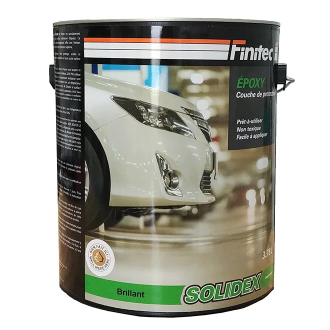 La couche de protection brillante Solidex de Finitec(MC) est spécialement formulée pour protéger, sceller et imperméabiliser les planchers, les comptoirs et toute autre surface d’époxy. Ce vernis incolore offre une résistance suprême et atteint une maturation complète en 7 jours. Il est idéal pour restaurer un plancher d’époxy existant ou pour offrir une meilleure résistance sur une surface d’époxy fraîchement appliquée. À base d’eau, il est non toxique et sans odeur. Il s’applique simplement au rouleau, sèche rapidement et adhère à tous vernis existants. Fait d’une seule composante, aucun mélange préparatoire n’est requis. C’est la solution parfaite pour avoir une finition brillante tout en bénéficiant de l’épaisseur de l’époxy. Format de 3,78 l. Résidentiel et commercialÀ base d’eau