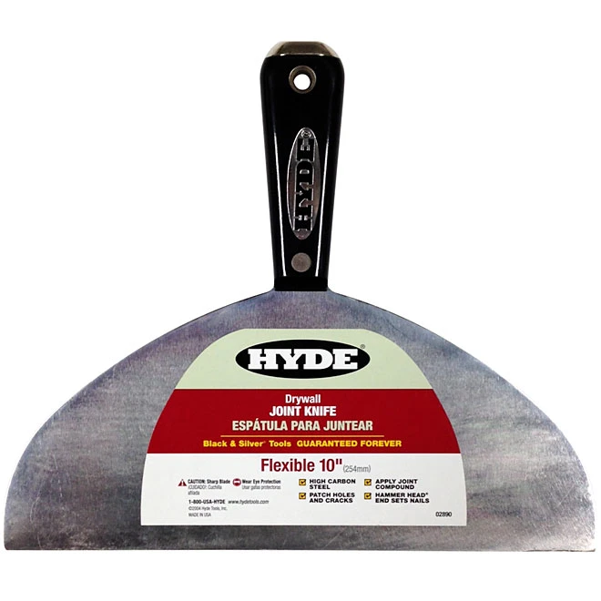 Remplissez rapidement des trous avec du composé à joints grâce à ce couteau de marque Hyde. Sa lame grand-angle est idéale pour les grandes surfaces. Ce couteau à joints de 10 pouces est doté d’une lame robuste qui le rend plus sécuritaire et plus durable. Sa poignée en nylon résiste à la corrosion causée par les solvants.