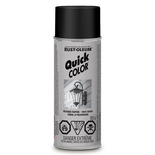 Émail à Vaporiser Universel Quick Color De Rust-Oleum, à Base D’huile, Noir Mat, 283 G