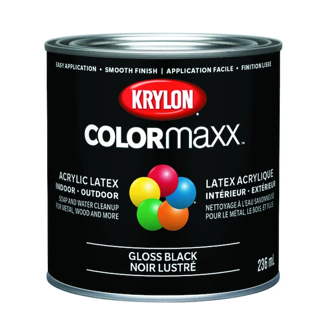 Krylon Peinture à émail Intérieure/extérieure COLORmaxx à Base D’eau, Noir Lustré (236 ML)
