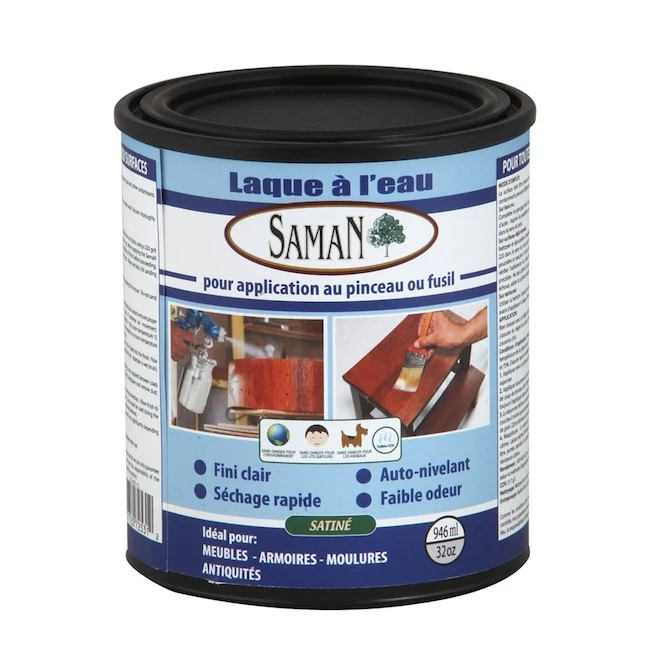 Laque Saman à Base D’eau Fini Clair Satiné 946 Ml
