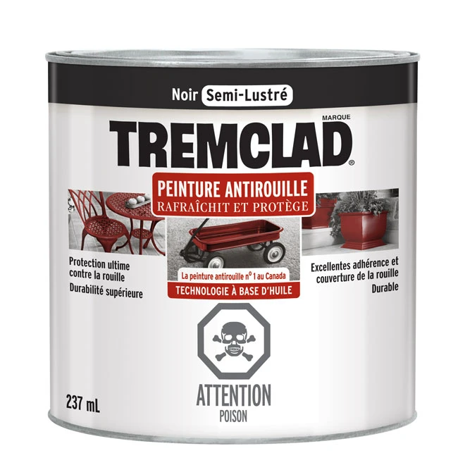 Peinture Antirouille, Tremclad, 237 Ml, Fini Semi-lustré, Noir
