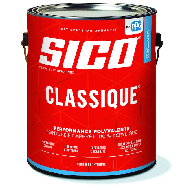 Peinture-apprêt D’intérieur 100% Acrylique Sico Classique, Base 2, Fini Coquille D’oeuf, 3,78 L
