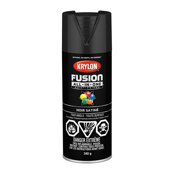 Peinture Et Apprêt En Aérosol Tout-en-un Fusion De Krylon, à Base D’acrylique, Noir Satiné, 340 G
