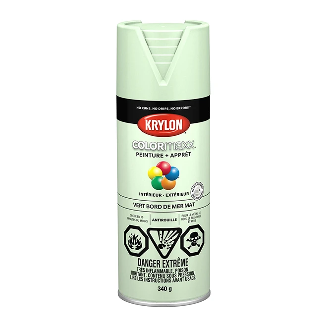 Peinture Et Apprêt En Un à Pulvériser Colormaxx De Krylon, à Base D’acrylique, Mat, Vert Bord De Mer, 340 G