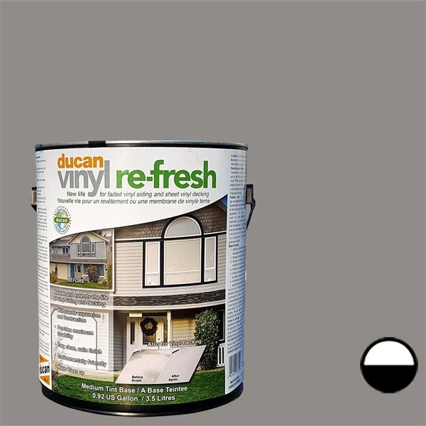 Les vinyles re-fresh de Duncan sont le choix numéro un pour changer le vinyle vieilli. Modernisez et rajeunissez l’apparence de votre revêtement en vinyle sur votre membrane de maison ou de terrasse avec notre mélange exclusif de PVC et de résines élastomères.Rajeunissez le style de votre terasse avec une seule couchePeut être teinté avec n’importe quelle formule de base de teinte moyenneOption bon marché de remplacement pour vos terrasses en vinyleCouvre 150 à 200 pi² par gallon (3,79 L)