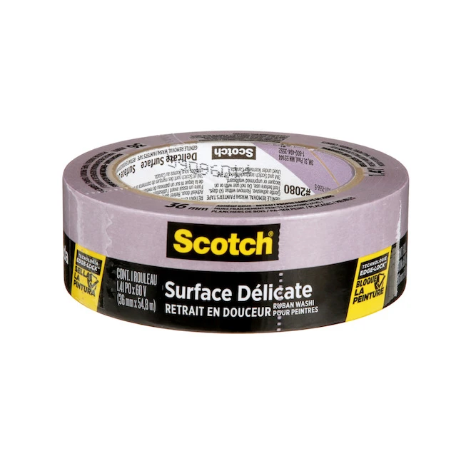 Parfait pour les surfaces fraîchement peintes, le ruban pour peinture conçu pour murs et planchers de bois ScotchBlue(MC) se retire proprement sans endommager les murs, armoires et planchers de bois. Il permet d’obtenir des lignes de démarcation très nettes. Il est possible de le retire de façon propre et sans résidus dans les 60 jours suivant son application. Il convient à une utilisation intérieure et extérieure. Ce ruban est doté d’un niveau d’adhérence se situant entre faible et moyen, de la technologie Advanced Egde-Lock(MC) et d’une résistance aux rayons UV. Il a une largeur de 1,4″ (36 mm) et longueur de 60 vg (55 m). Conçu pour être utilisé sur des surfaces délicates telles que les cloisons sèches peintes, les murs fraîchement peints, les planchers en bois, les papiers peints, les placages et les armoires (peintes depuis au moins 24 heures)Idéal pour les murs d’accent, les rayures ou les motifs décoratifsLa technologie Edge-Lock permet de bloquer l’entrée de la peinture pour obtenir des lignes de peinture nettesLe retrait après 60 jours ne laisse aucun dommage ni résidu collantAdhésif douxRésistant aux rayons UV et à la lumière du soleil (conçu pour un usage intérieur uniquement)Dimensions : 1,41 po x 60 vg1 rouleau/paquetTracez des carrés pour la distanciation sociale : créez des files d’attente avec des boîtes ou des » X » dans une zone ou faites des couloirs dans les allées de manière rapide, facile et efficace, qu’il s’agisse d’une utilisation à court ou à long terme